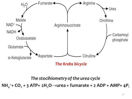 O fumarato (um dos passos para a formação da arginina) é convertido à malato na união dos ciclos de Krebs com o da uréia ("biciclo" de Krebs).